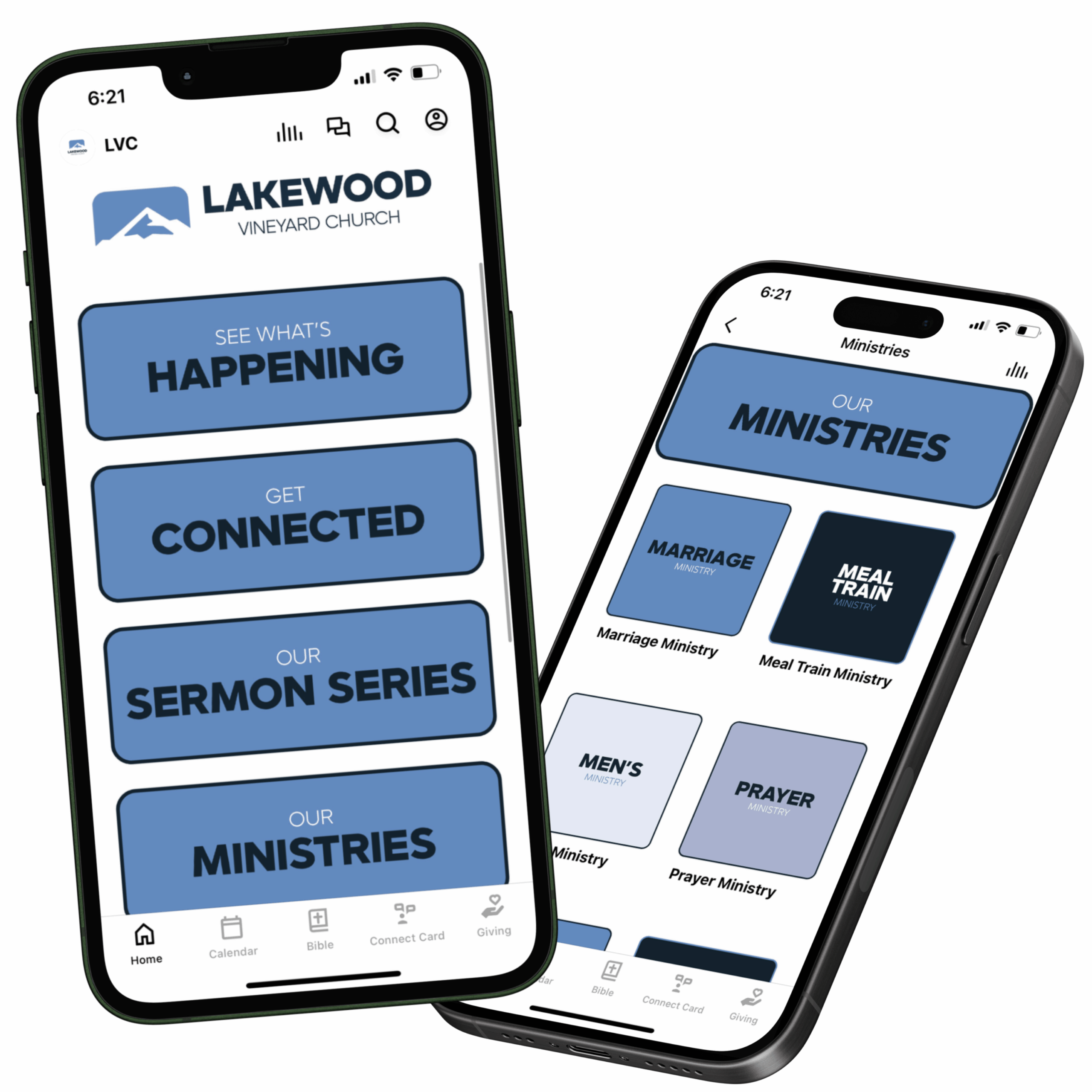 Find our Calendar, Connect with Small Groups, Listen to our Podcast, and much more… stay connected to everything happening within the Lakewood Vineyard Church on the LVC App.
