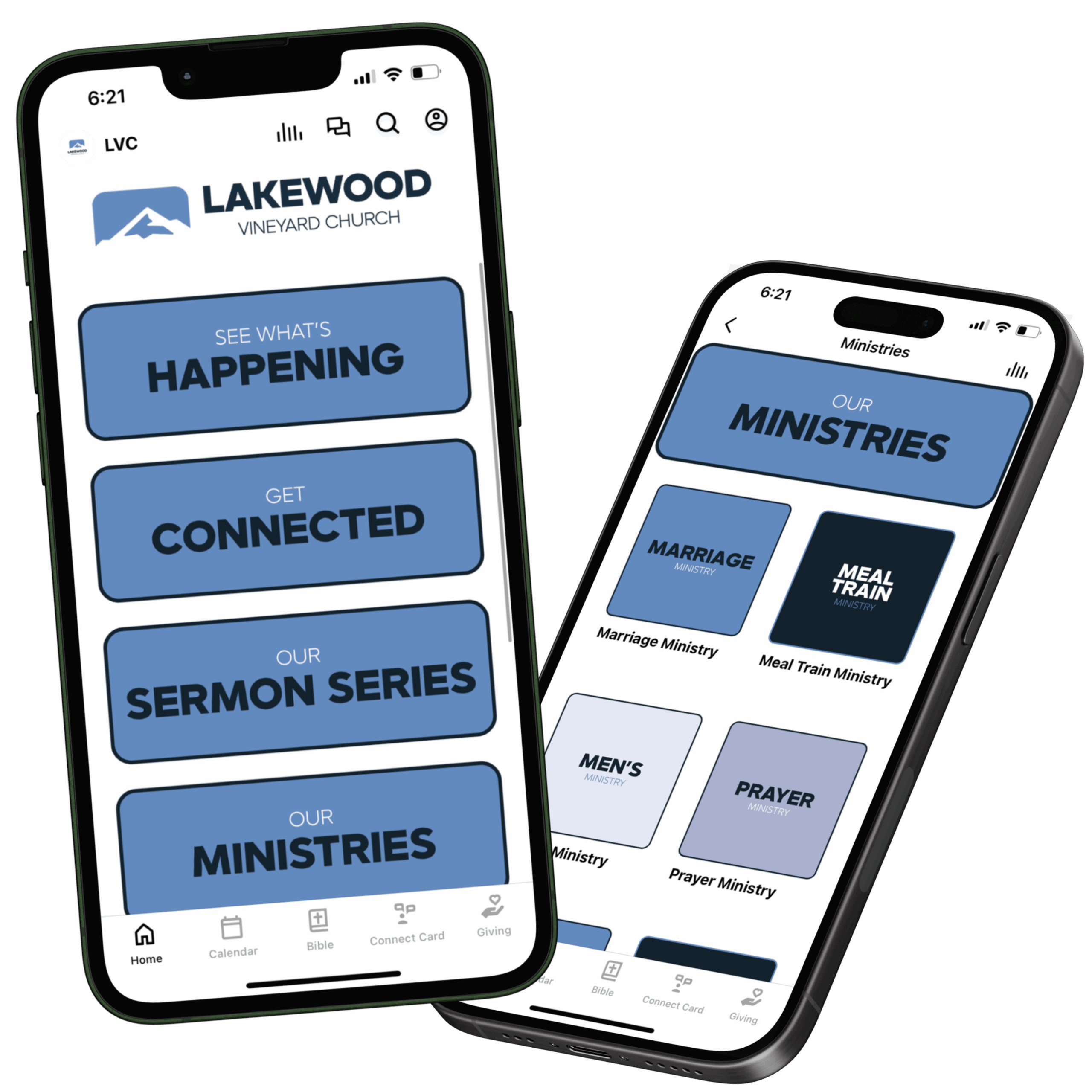 Find our Calendar, Connect with Small Groups, Listen to our Podcast, and much more... stay connected to everything happening within the Lakewood Vineyard Church on the LVC App.